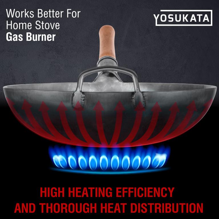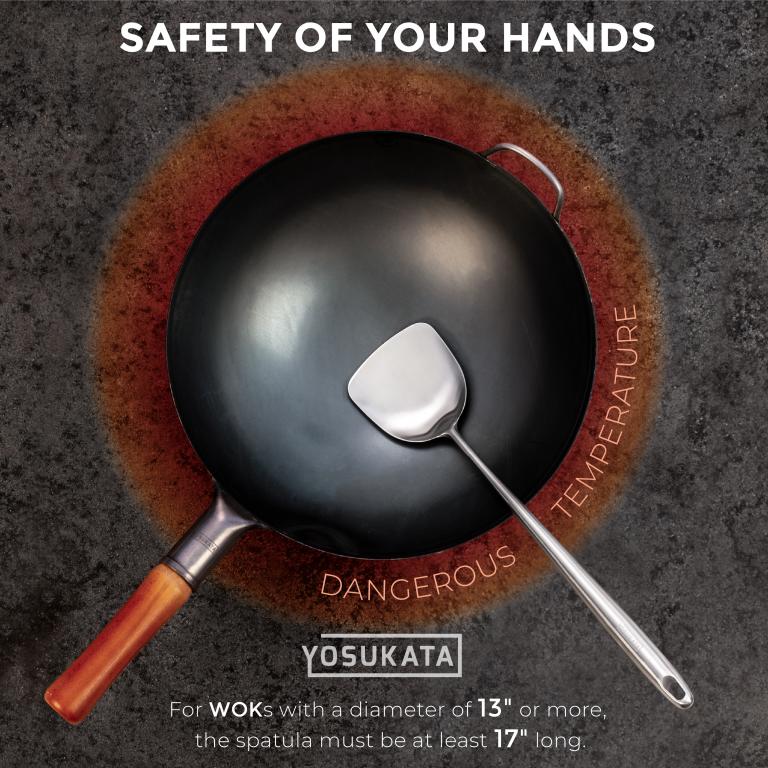 HIGH-QUALITY MATERIALS: This large professional wok pan is made from heavy-duty, 15 gauge carbon steel. The ergonomic design of the wooden handle ensures a comfy grip when you use this cooking wok. HAMMERED WOK: Our carbon steel wok is crafted and hammered by artisans to perfection. Unlike others woks and stir fry pans the handle base is welded ant tightly fixed. Our Chinese wok is made for cooking a lifetime. GENUINE TASTE: Discover the rich, authentic flavors of Chinese, Korean, Japanese cuisines in your own home. The Yosukata 14 inch wok with round bottom is specially designed to lock the juice and flavor inside ingredients. Convenient: The handles on both the kitchen spatula and wok ladle have holes for easy hanging. The silky finish looks beautiful and feels good in the hand. Versatile: Our steel spatula is perfect for flipping and cooking meats and vegetables, and the stainless steel ladl is the tool you want for adding oil, stock, and liquids to your masterpieces. Order the YOSUKATA wok tools for top-notch Asian cooking. Note: Products with electrical plugs are designed for use in the US. Outlets and voltage differ internationally and this product may require an adapter or converter for use in your destination. Please check compatibility before purchasing.